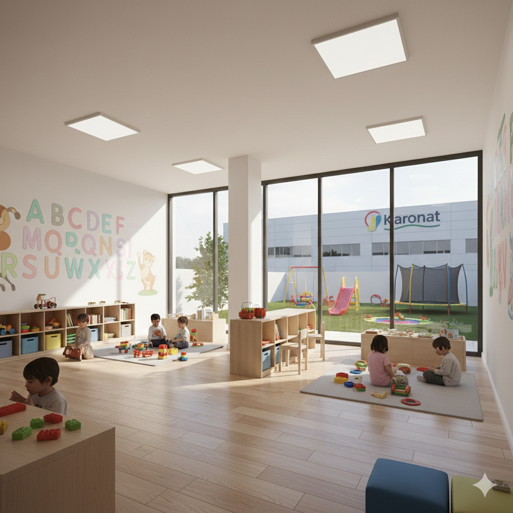 Karonat, çalışanlarının aile hayatını desteklemek adına kampüs içerisinde profesyonel bir kreş ve gündüz bakımevi hizmeti de sunmaktadır. Ebeveynlerin çocuklarını güvenle bırakabileceği bu modern eğitim alanı, iş ve özel hayat dengesini kurmalarına büyük katkı sağlar. Fabrika kampüsü içinde yer alan bu kreş, hem ulaşım kolaylığı sağlaması hem de çalışanların çocuklarına yakın olma huzurunu yaşatmasıyla, Karonat’ı bölgedeki en tercih edilen ve kapsayıcı işveren markalarından biri haline getirir.