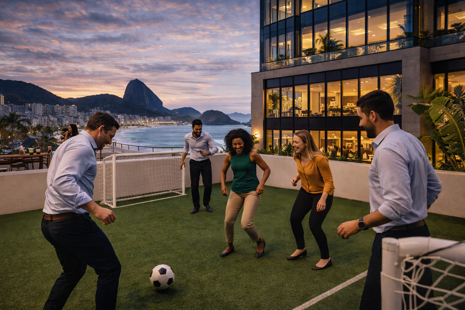 Çalışan deneyimi odaklı sosyal alanlar ise Rio ofisinin önemli bir parçasıdır. Terasta düzenlenen samba & kültür günleri, açık hava toplantı alanları, deniz manzaralı dinlenme lounge’u ve ekip dayanışmasını güçlendiren sosyal etkinlik programları ofis yaşamını zenginleştirir. Spor ve hareketi destekleyen mini fitness köşesi, masa oyunları ve ekip atölyeleri ise çalışanların hem sosyalleşmesine hem de keyifli bir çalışma deneyimi yaşamasına katkı sağlar. Bu yapısıyla Rio de Janeiro Ofisi, Karonat çalışanlarına yüksek enerji, kültür ve topluluk ruhu ile şekillenen bir çalışma ortamı sunar.