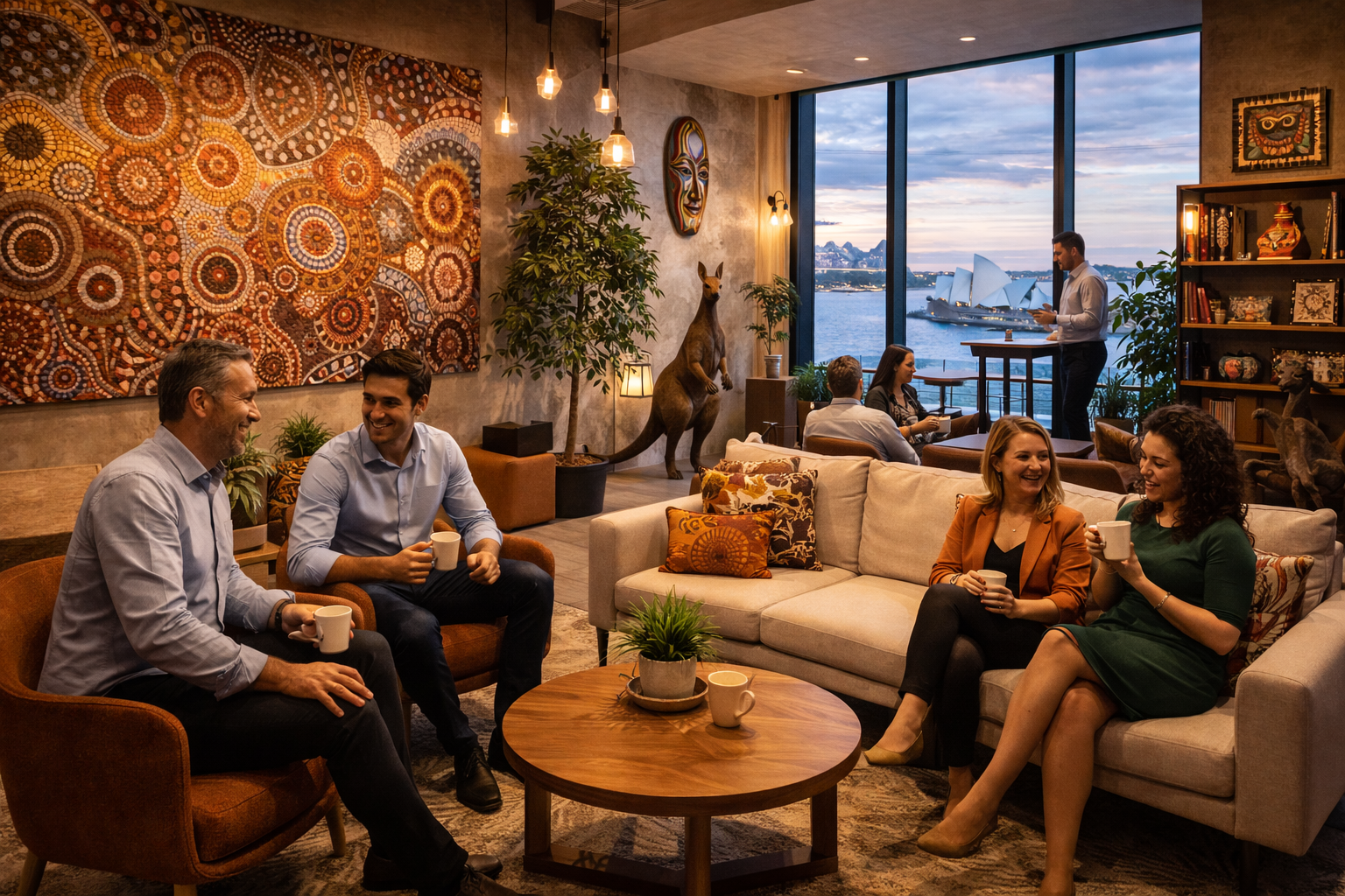 Ofis tasarımında Avustralya’ya özgü kültürel unsurlar sıcak ve doğal bir atmosfer yaratacak şekilde kurgulanmıştır. Ortak alanlarda yer alan modern kanguru figürleri, Aborjin sanatından esinlenen duvar desenleri ve yerel motiflerin işlendiği dekoratif detaylar mekâna benzersiz bir karakter kazandırır. Doğal ahşap dokular, açık renk tonları ve geniş gün ışığı alan çalışma bölümleri, çalışanların odaklanma ve yaratıcılık süreçlerini destekleyecek biçimde planlanmıştır. Sydney ofisi, mimari yaklaşımıyla sadece bir çalışma alanı değil, yerel kültürle bütünleşen bir yaşam ve paylaşım alanı sunar.